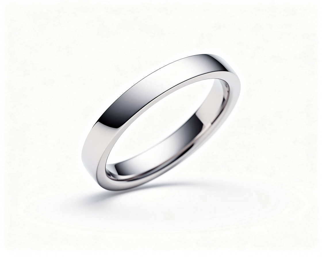 Simple Weddingband. Minimalist futuristic product render, floating object in clean soft-light studio, Apple-style lighting, ultra-sleek surfaces, subtle reflections, white background, premium commercial photography, high-end design aesthetic, hyperclean materials, 8k