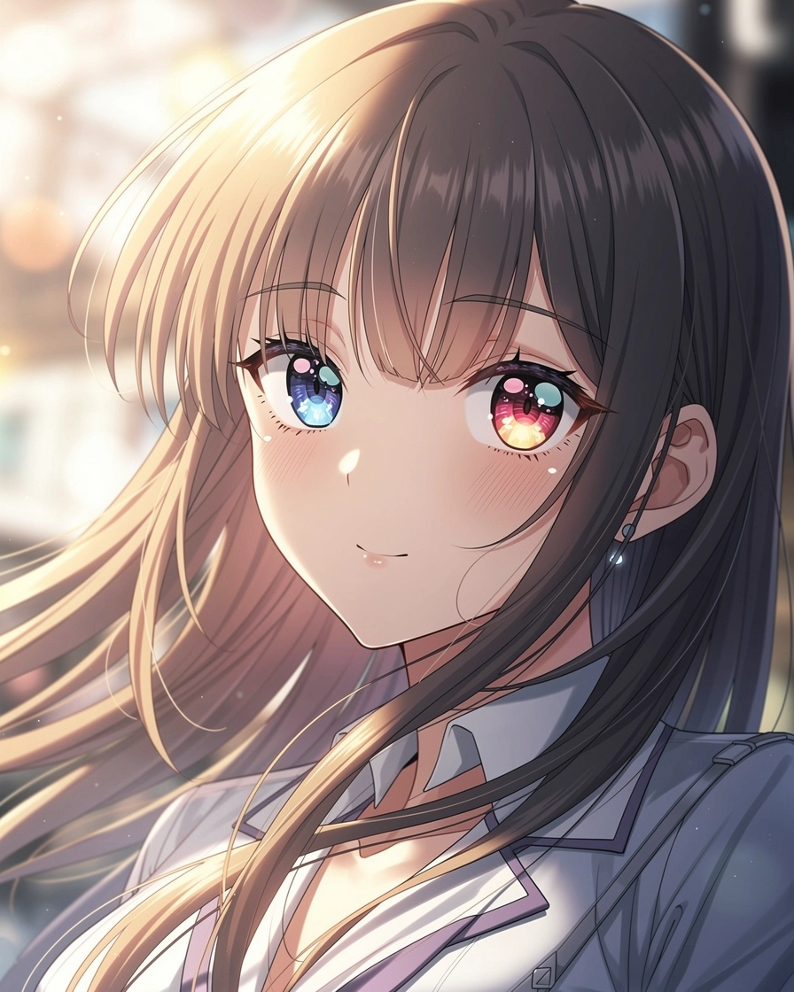 Modern high-end anime illustration, crisp lineart, vibrant soft shading, luminous eyes, detailed hair strands, dynamic lighting, studio-quality coloring, Japanese anime key-visual style, expressive atmosphere